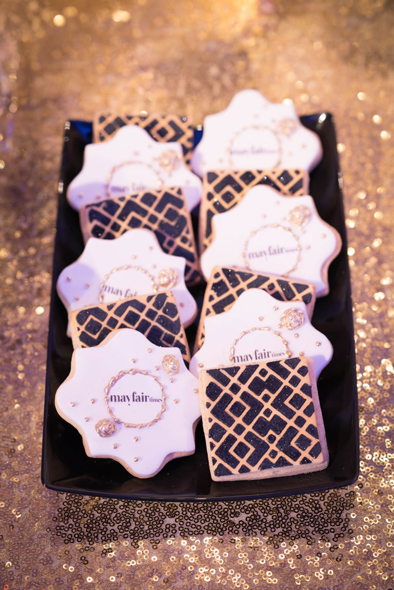 Our Great Gatsby inspired themed Indulgence Bar has certainly been a talking point. Hosted by The Mayfair Times Community Awards of Mayfair and St James’s, we wanted the Indulgence Bar to complement the elegance and grandeur of Claridge’s for the 400 guests with a show-stopping, Art Deco, six tier black, gold and white centrepiece, boasting hand painted gold ruffles, cascading pearls and black sugar crystals.